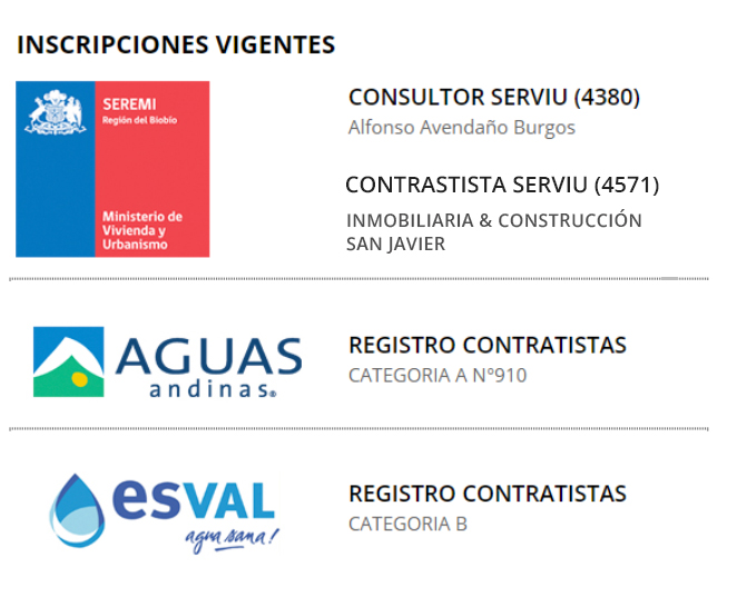 Nuestros servicios requieren de certificaciones de las empresas controladoras, por ejemplo, Serviu, Aguas Andinas y Esval. Por tal motivo, nuestra fiscalización interna es de gran importancia para cumplir con los objetivos en los tiempos establecidos.